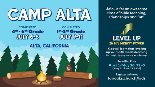 Kids Camp is a Gospel-centered overnight camp at Camp Alta where kids can explore their relationship with God and the outdoors. Kids can expect engaging lessons related to the theme, recreation games, meeting new friends, outdoor adventures, crafts, and memories that will last a lifetime!
