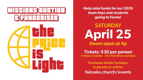At Fair Oaks Church, reaching people for Jesus in our neighborhoods and around the world is a huge part of who we are.