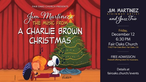 Fair Oaks Church is hosting the talented Jim Martinez Jazz Trio and special guests, who will be performing the festive holiday music from A Charlie Brown Christmas. Doors open at 6pm. Admission is free. There will be a freewill offering taken to benefit the musicians. This is going to be a fun community event that all are welcome to attend!