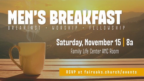 Join us for a monthly gathering of men of all ages. We will meet the 3rd/Saturday of most months. We are meeting on November 15th, from 8-10a for breakfast, worship and fellowship in the Family Life Center. RSVPing helps us plan for food!