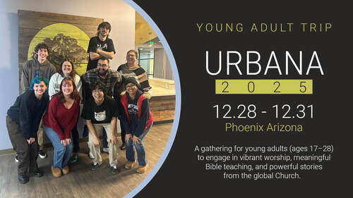 We're excited a group of young adults will be going to the Urbana 2025 conference this year hosted in Arizona! Please be praying for this team traveling 12/18-12/31, and that they would experience Jesus in a transformative way through this conference.